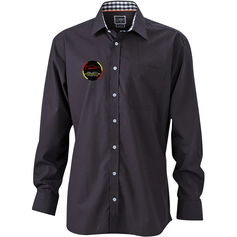 Chemise Homme Manches longues Col non boutonné Fermeture boutonnée nacrée Empiècements intérieurs Vichy au col et aux poignets Longues manchettes avec boutons de réglages Pli dorsal Coupe ajustée à base arrondie Poche poitrine 100% coton popeline 100 gr/m² Traitement Easy care pour un entretien facile