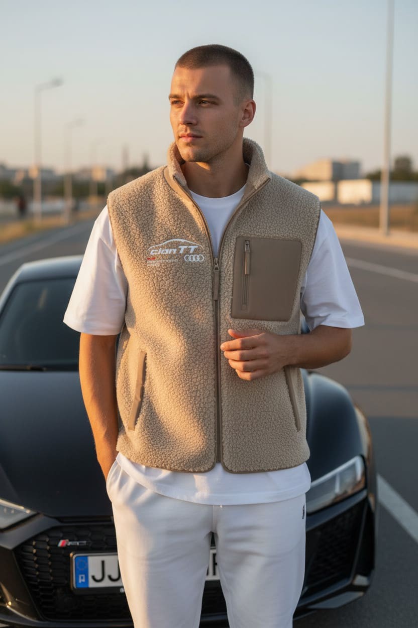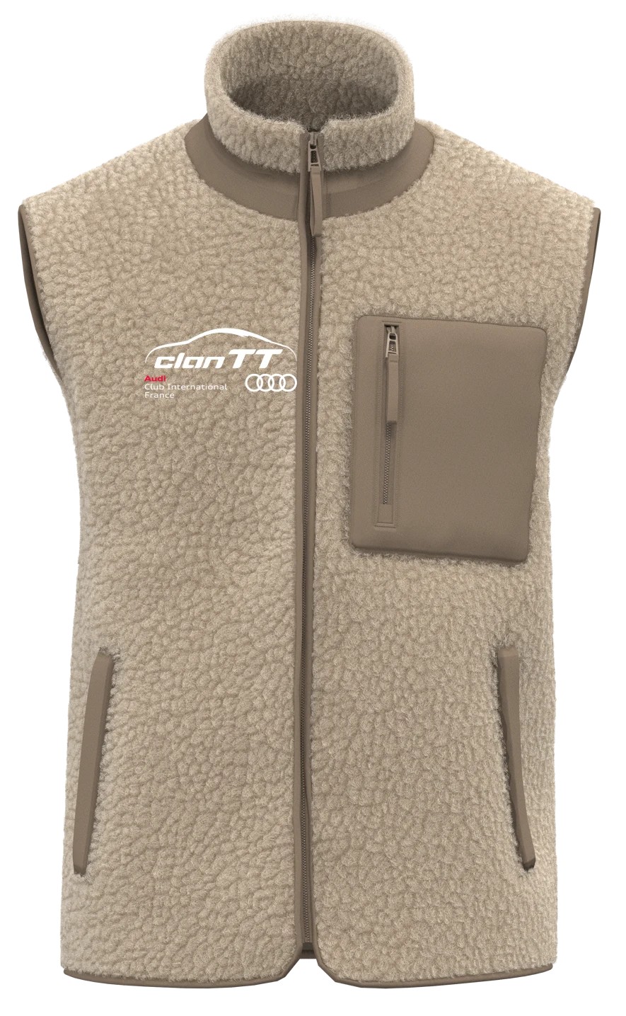 100% polyester recyclé post-consumer. Polyester pongé. Coupe standard. Tissu déperlant niveau 4 avec enduction. Veste rembourrée en polyester recyclé post-consumer. Col teddy. Fermeture avant par boutons-pression recyclés ton sur ton. Bord côte 1 x 1 avec bandes contrastées au col, bas de manches et bas de vêtement. Poches avant passepoilées fermées par bouton-pression invisible. Poche intérieure zippée côté cœur au porté. Doublure matelassée ton sur ton. Patch de personnalisation en matière principale avec bride de suspension à l’intérieur du vêtement.Personnalisé en broderie à l'unité