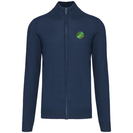 50% coton / 50% acrylique (jauge 12). Coupe cintrée. Col cheminée double épaisseur et fermeture avec zip métal fumé. Bande de propreté à l'encolure.