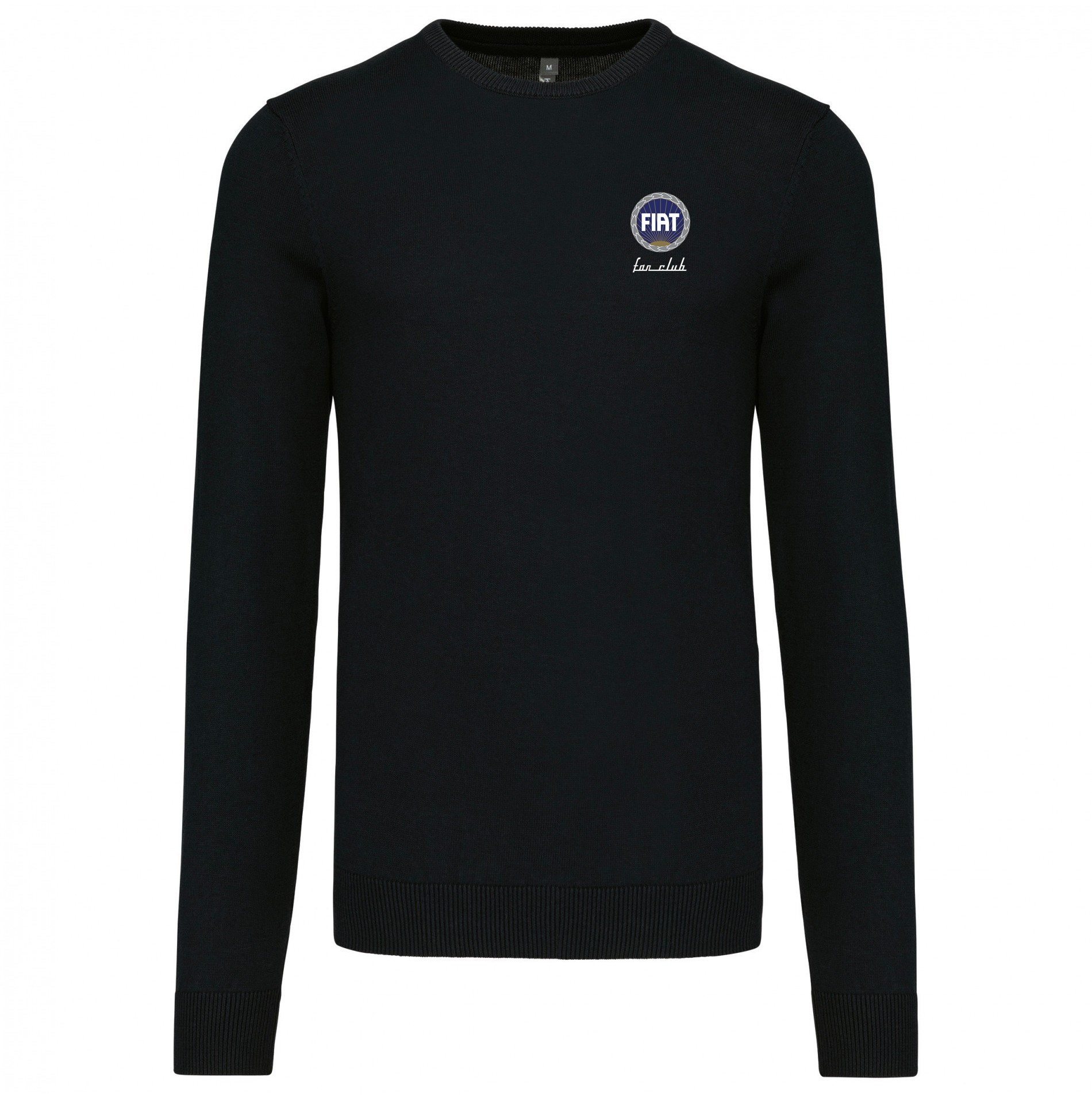 Pull col rond homme Fiat 50% coton / 50% acrylique (jauge 12). Coupe ajustée. Bord-côte du col double épaisseur. Bande de propreté à l'encolure.