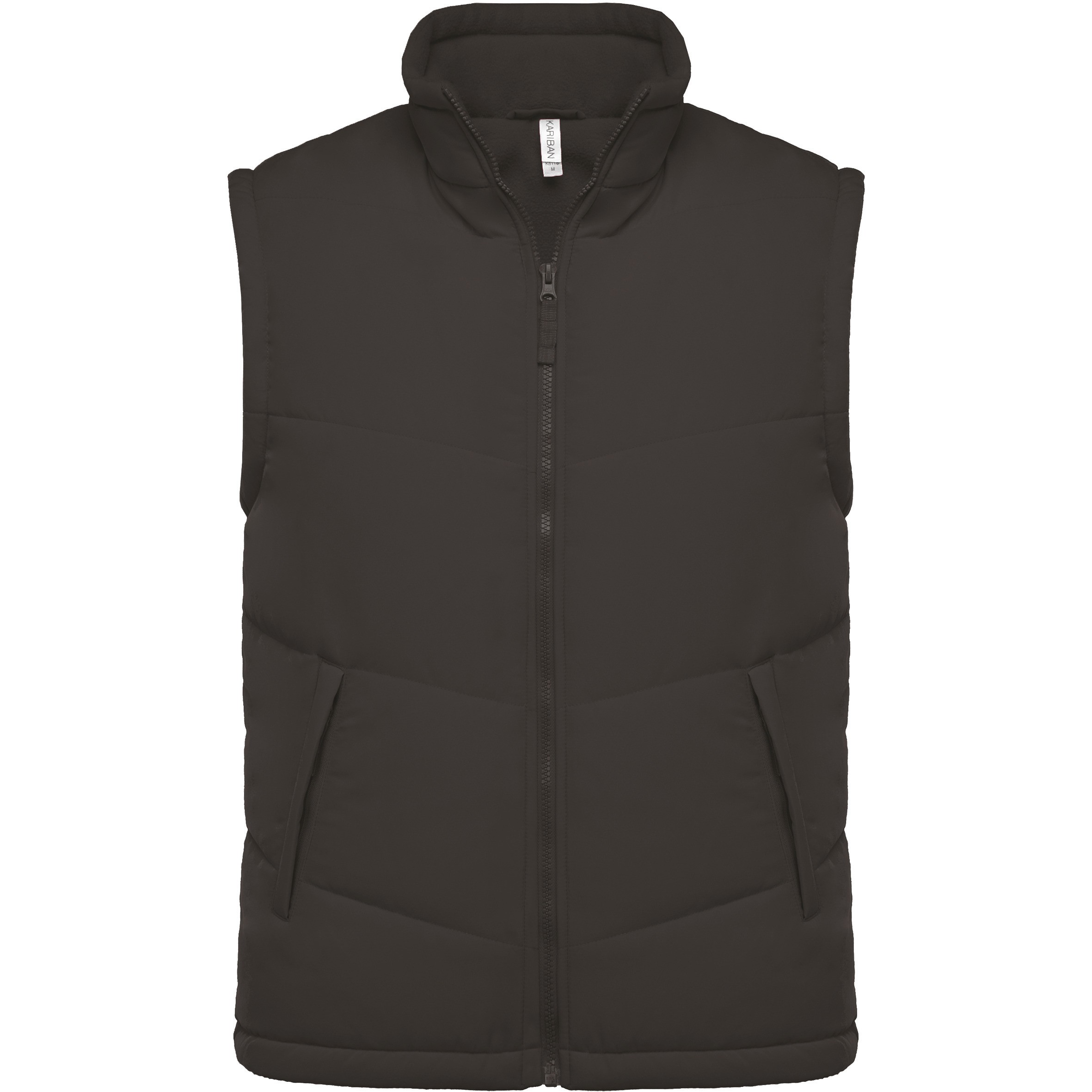 Extérieur : 100% polyester microfibre. Garniture intérieure 100% polyester. Doublure intérieure polaire 100% polyester. Chaud et confortable. 2 poches extérieures zippées passepoilées, 1 poche intérieure avec bande auto-agrippante. Zips, finitions et doublures ton sur ton