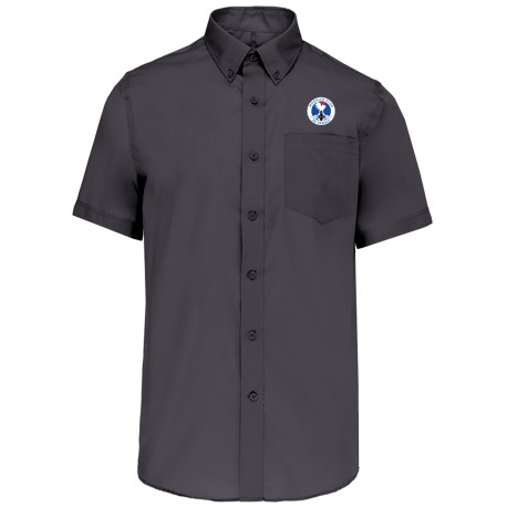 100% coton micro sergé. Tissu nouvelle technologie sans repassage. Col boutonné. Poche poitrine côté gauche en V.